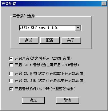 设置完手柄后点击继续再点完成即可完成配置程序。这时程序会回到模拟器的主界面,点击配置==>>声音会出现图7的画面,在这里一定要把“开启声音”和“开启音频插件IRQ中断”选中,其它的选项开后会影响速度,如果你的电脑比较好的话,推荐全部都选中,这样在玩游戏时才能听到完整的游戏音乐。设置好后回到模拟器主界面点击选项,把始终打开SIO中断请求选中。到这里ePSXe模拟器的设置基本完成了。如果以后你还要改一下各种设置的话,点击主界面中的配置,然后在其中选择你要改动的各个设置即可。然后点击文件==>>退出,然后再重新打开模拟器。(记住:当你设置完后一定要退出模拟器,然后再重新打开模拟器,这样你所做的配置才会生效)